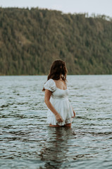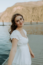 This lovely senior session took place in a beautiful North Idaho location on the lake, by the mountains, and in a field with trees and tall wheat looking grass.
